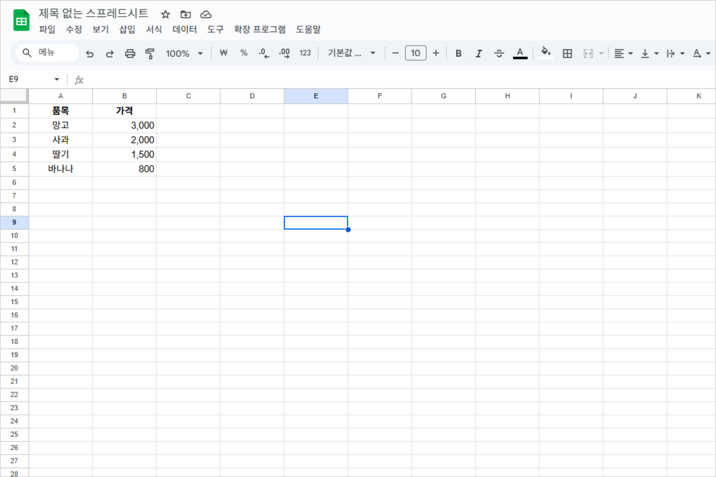 1. 구글 스프레드시트 열기