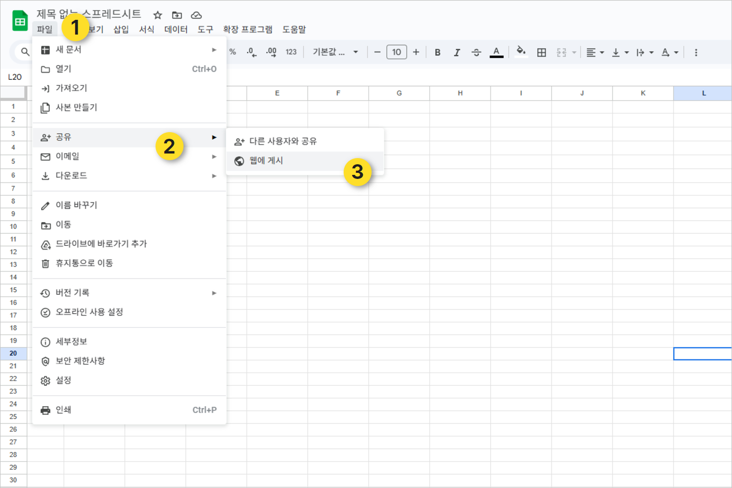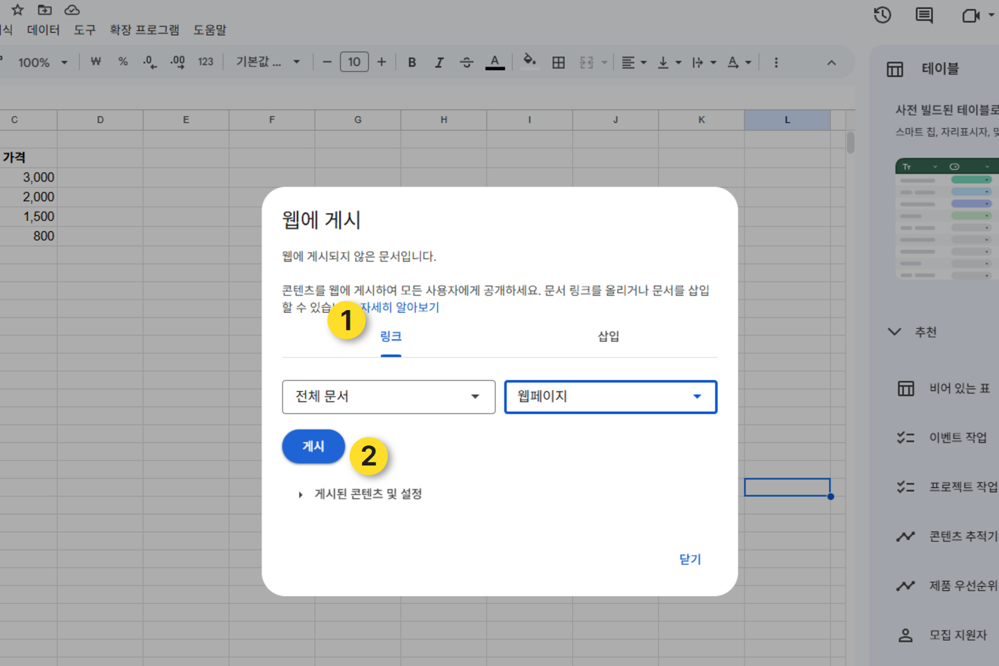 3. 구글 스프레드시트 웹 게시