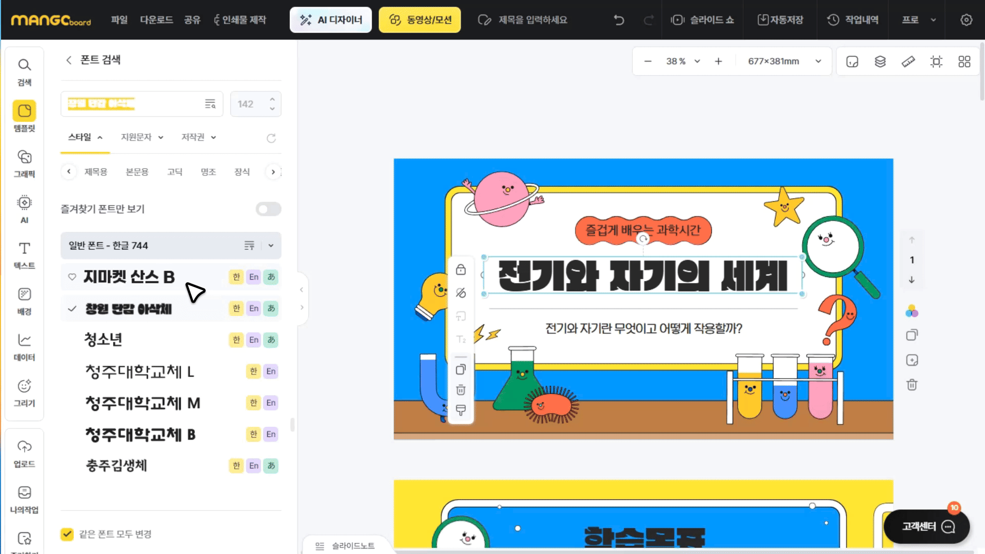 작업공간 안에 있는 폰트를 모두 한꺼번에 바꾸실 수 있습니다.