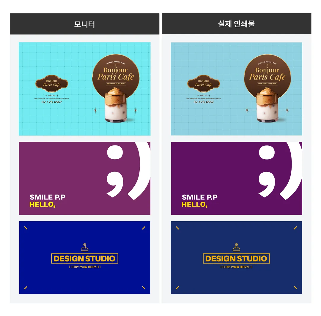 실제 인쇄에서는 결과물이 완전히 달라질 수 있기 때문입니다.