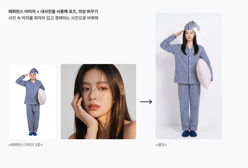 •사진 1장으로 포즈와 의상을 자유롭게 바꿀 수 있습니다.
