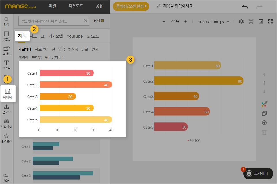 다음으로는 스프레드시트의 데이터를 망고보드 차트에 연결 시키는 작업을 합니다.