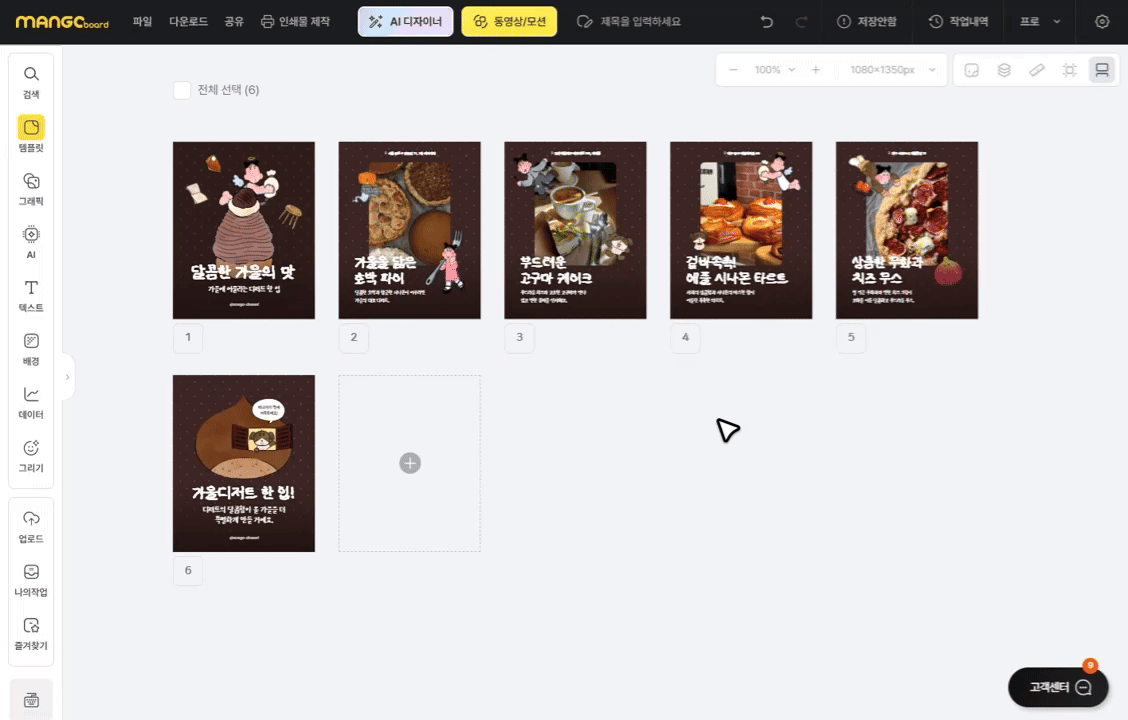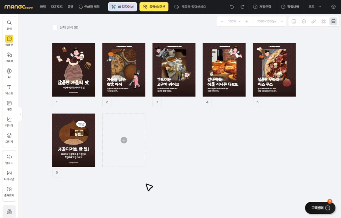 슬라이드 사이 또는 슬라이드 우측으로 마우스를 올리면 +버튼이 생깁니다.