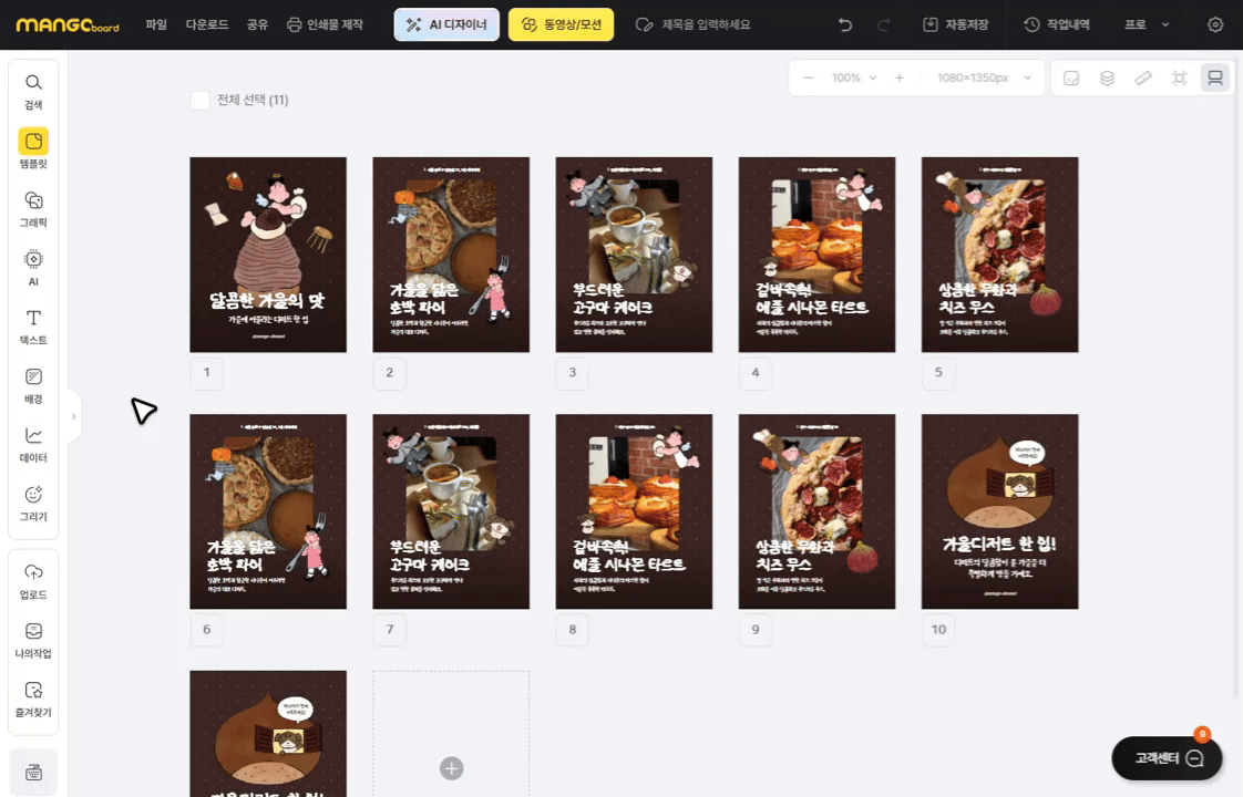 우측 상단에 '여러 슬라이드 보기' 탭을 클릭하면 여러 슬라이드가 한눈에 펼쳐집니다.