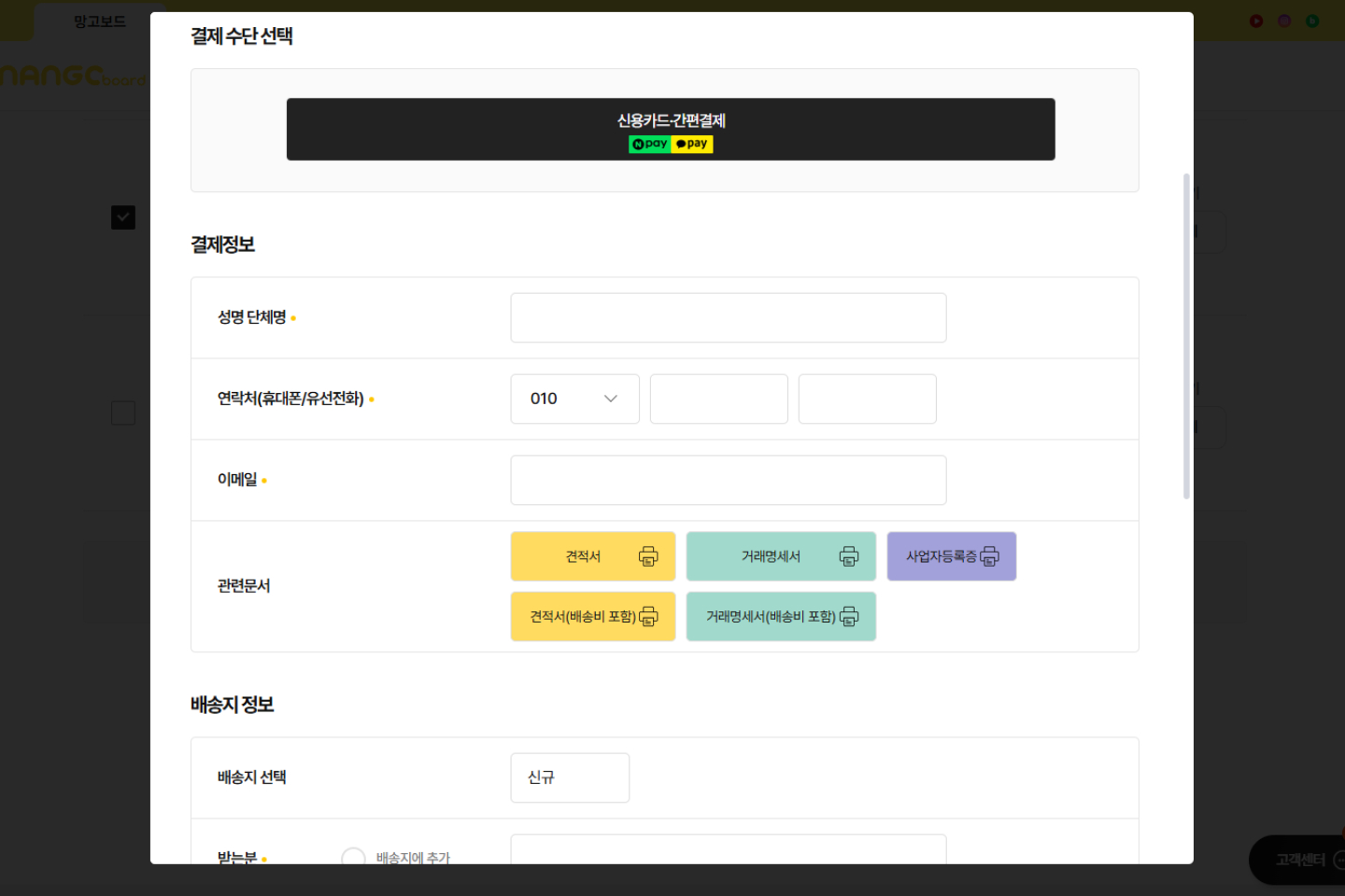 인쇄 품목들은 망고보드에서 디자인한 후 바로 인쇄 주문할 수 있습니다