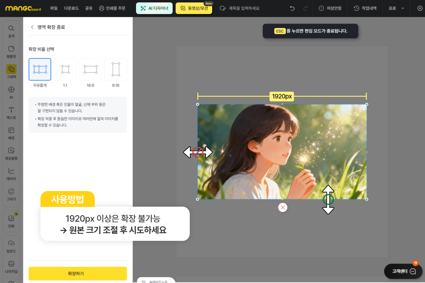 원본 이미지가 1920px를 초과할 경우에는 확장이 불가능합니다.