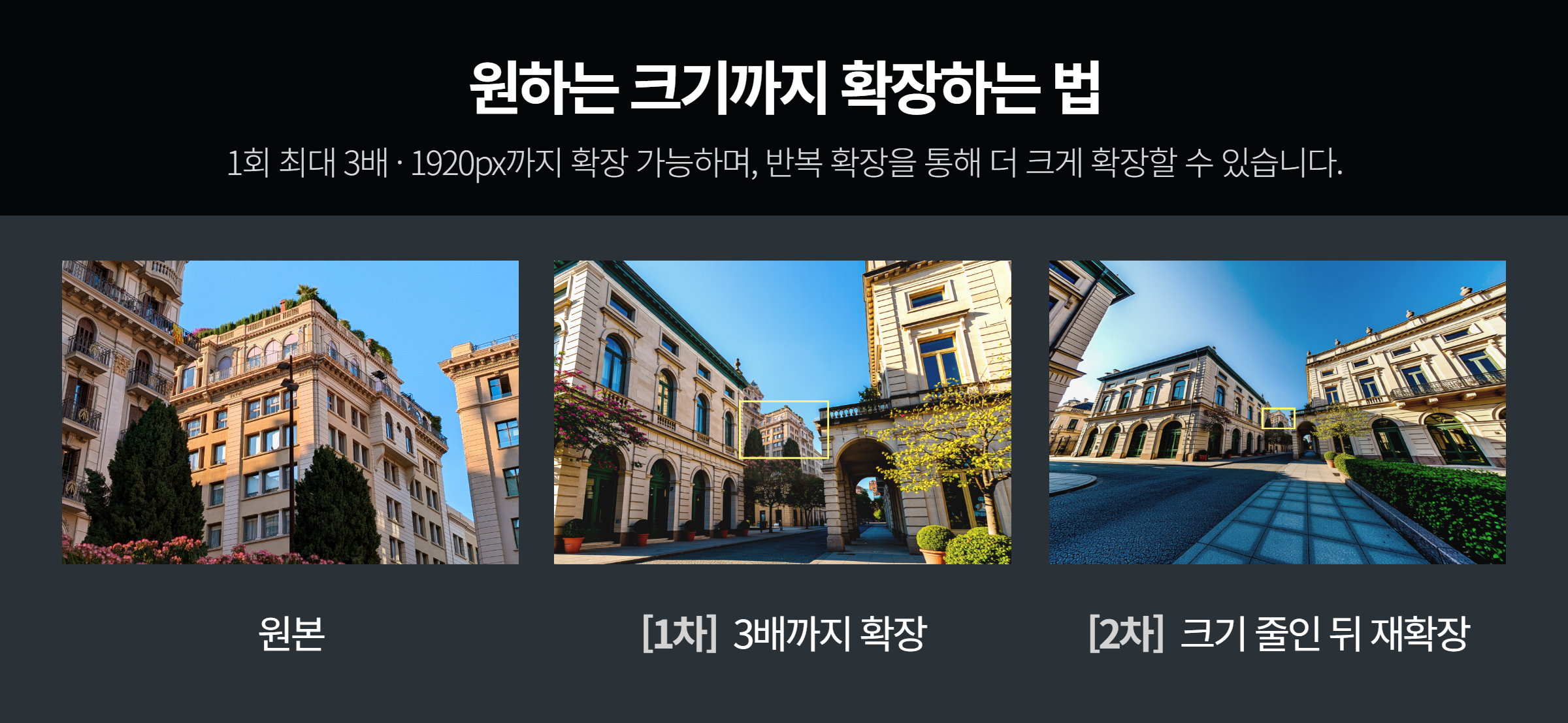 영역확장은 한 번 생성할 때 원본 이미지의 3배까지 확장이 가능합니다.