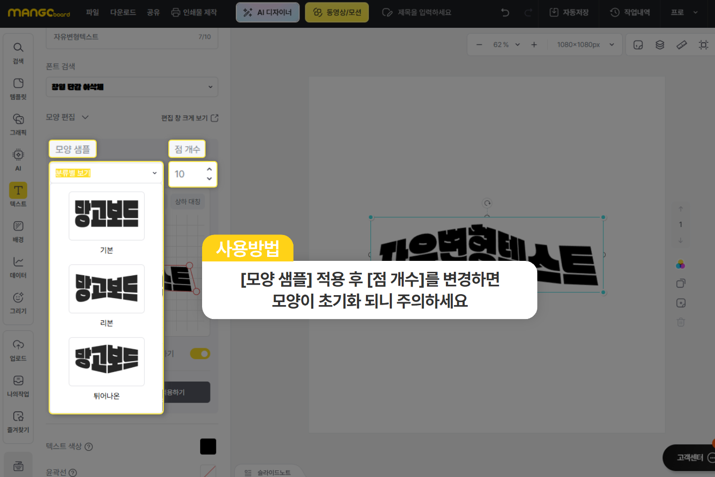 ※ 단, 모양 샘플 적용 후 점 개수를 수정하면 초기화 되니 주의하세요!