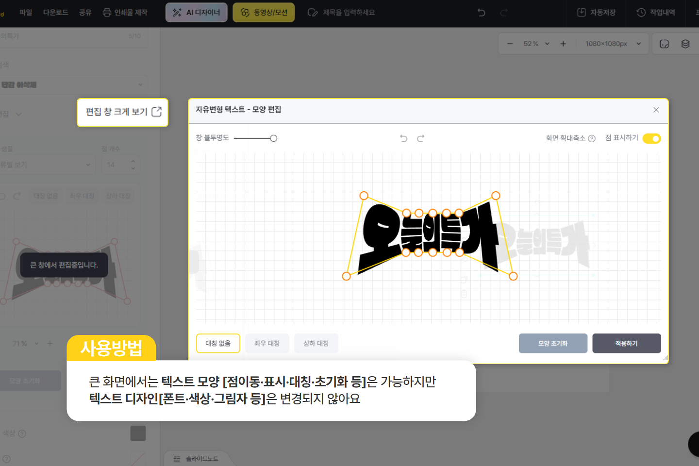 ※ 텍스트 디자인[폰트·색상·그림자 등]은 큰 창에서 반영되지 않습니다.