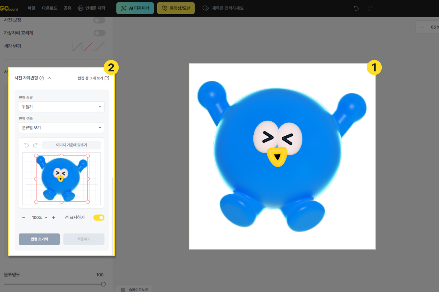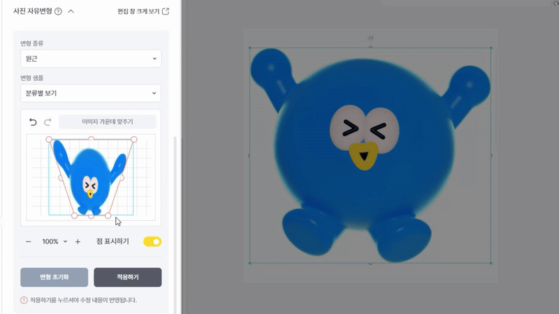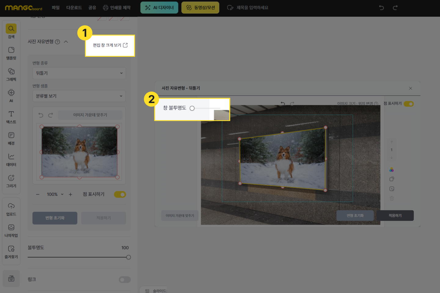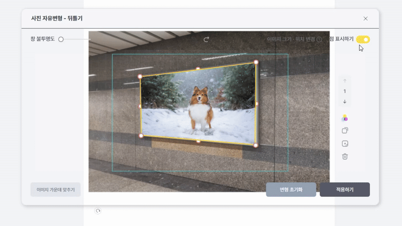 그럼 좌측 탭에 '사진 자유변형' 옵션이 나옵니다.