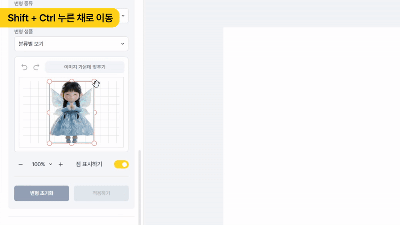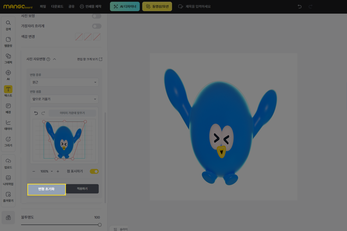 '변형 초기화'를 누르면 다시 원래 모양에서 시작할 수 있습니다.