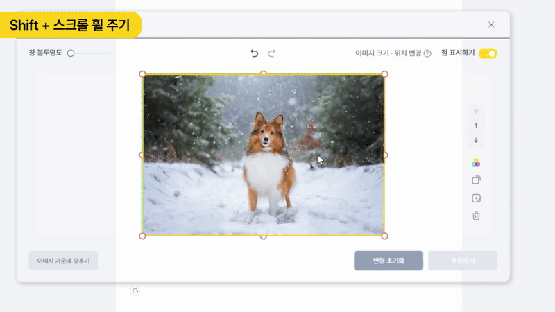 변형하는 사진 크기를 키우거나 작게 하고 싶을 때,