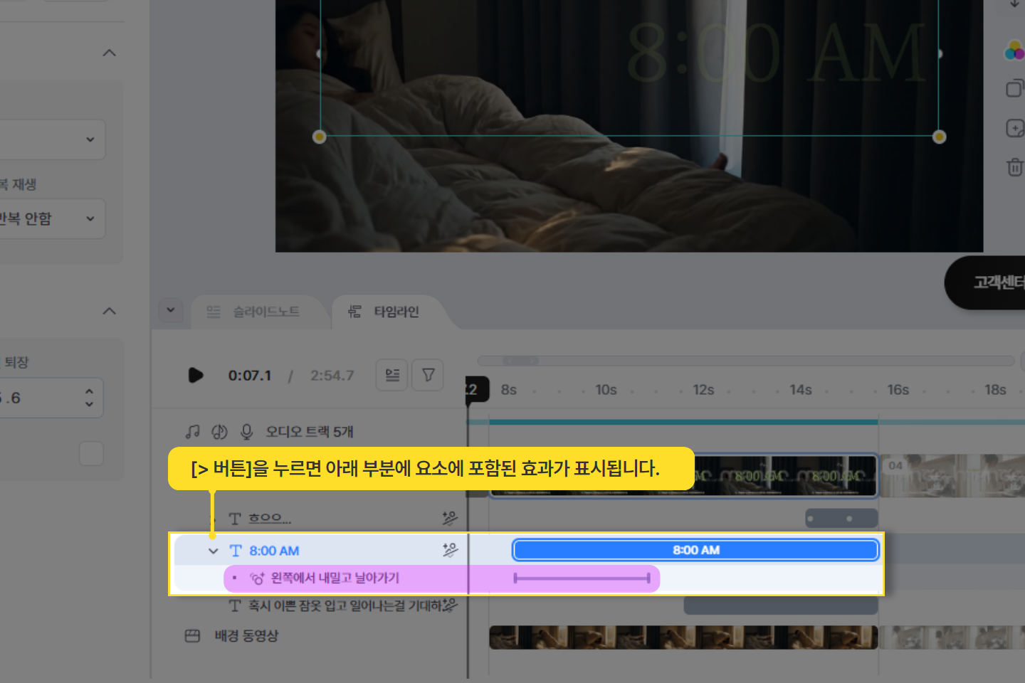 해당 요소에 적용된 효과가 하단에 표시됩니다.