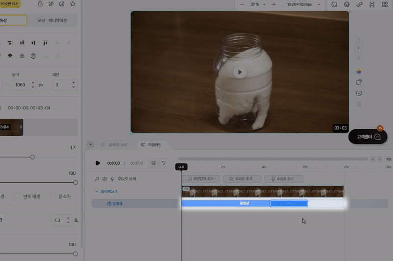 ✅ 동영상 블록의 종료 시점(오른쪽)을 줄일 때