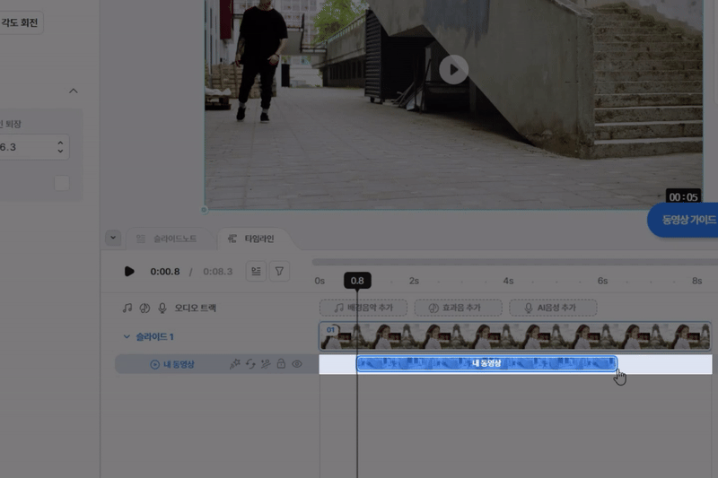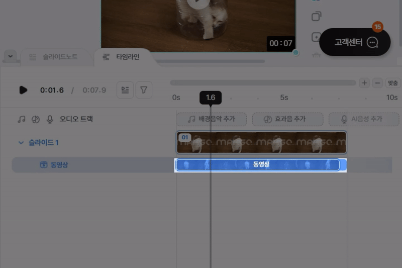 타임라인에 있는 ‘동영상 블록’을 마우스로 잡아당겨