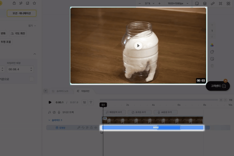 아래쪽 타임라인에 동영상 블록이 하나 생깁니다.