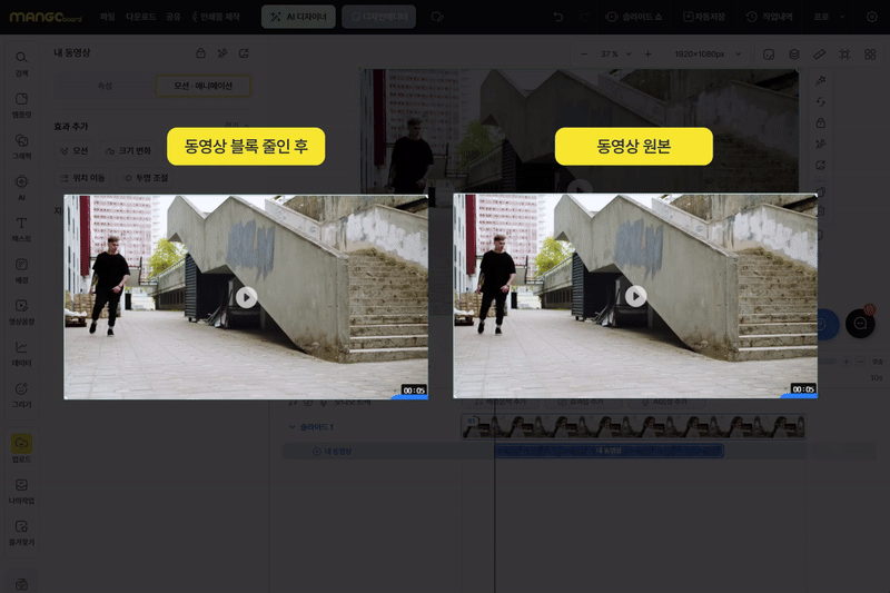 ✅ 동영상 블록의 ‘시작 시점(왼쪽)을 줄일 때