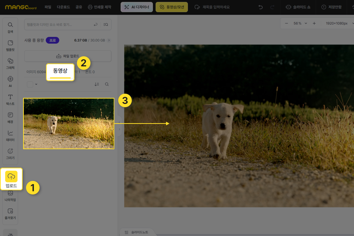 먼저 업로드한 영상을 슬라이드로 가져 옵니다.