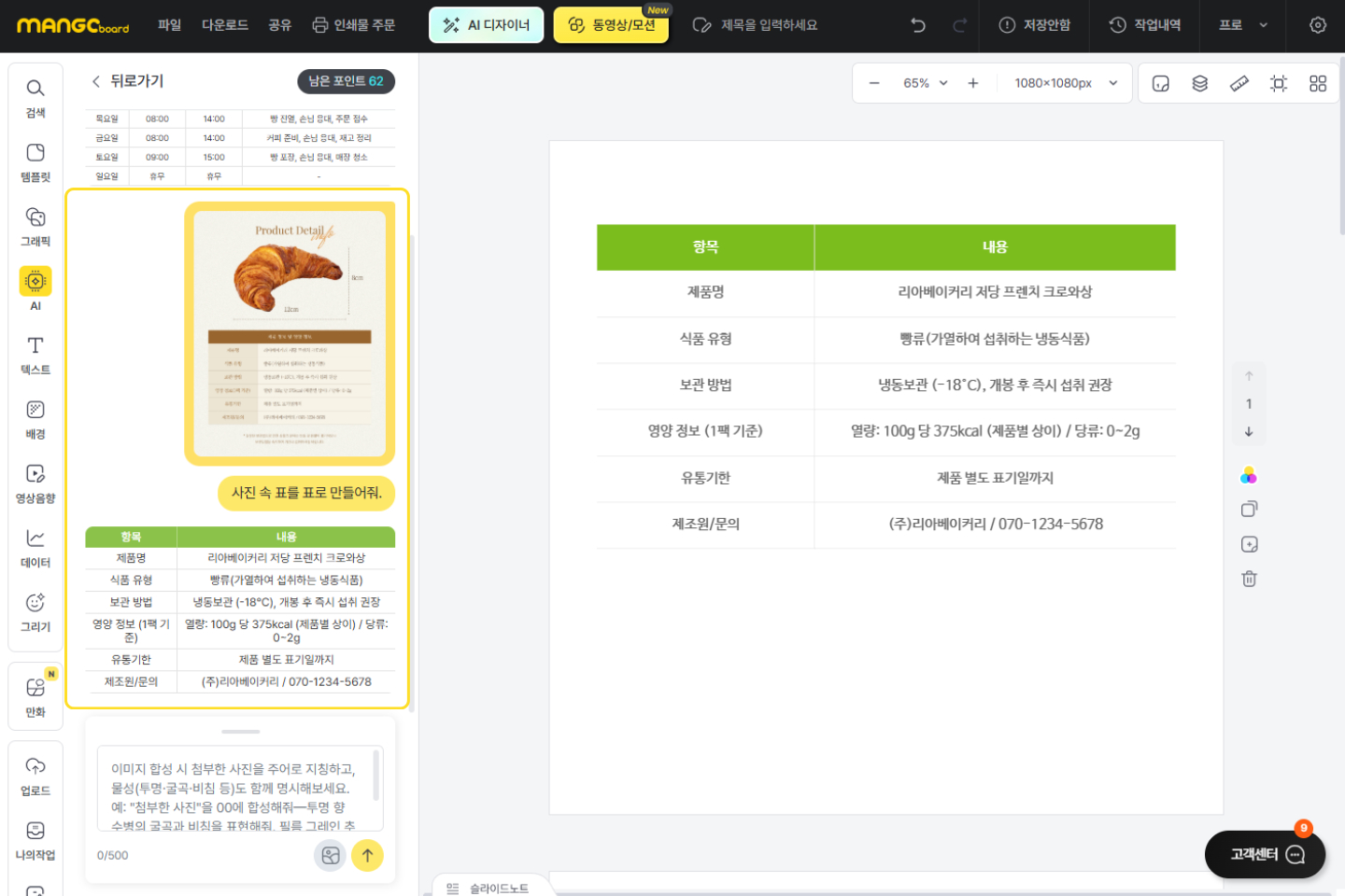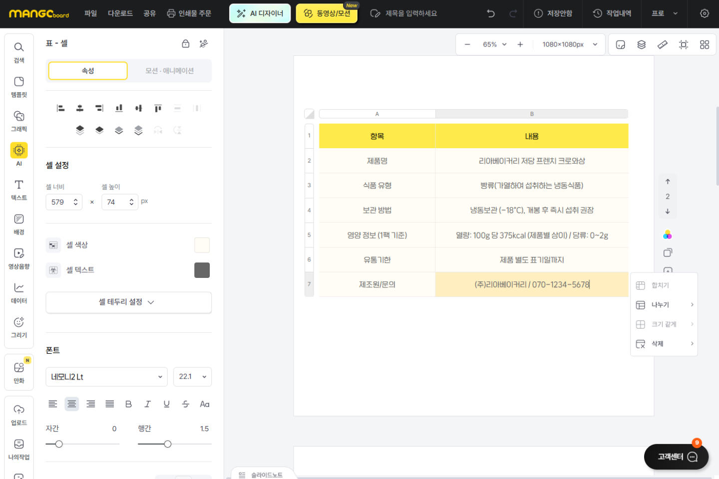 단순 이미지가 아닌 망고보드에서 편집이 가능한 표 데이터로 제작됩니다.