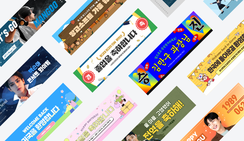여행, 응원, 행사 등 용도별로 다양한 템플릿들이 준비되어 있어