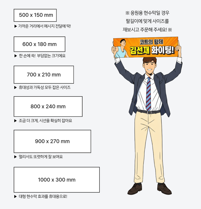마음에 드는 걸 고르기만 하면 나만희 현수막을 바로 만들 수 있답니다!