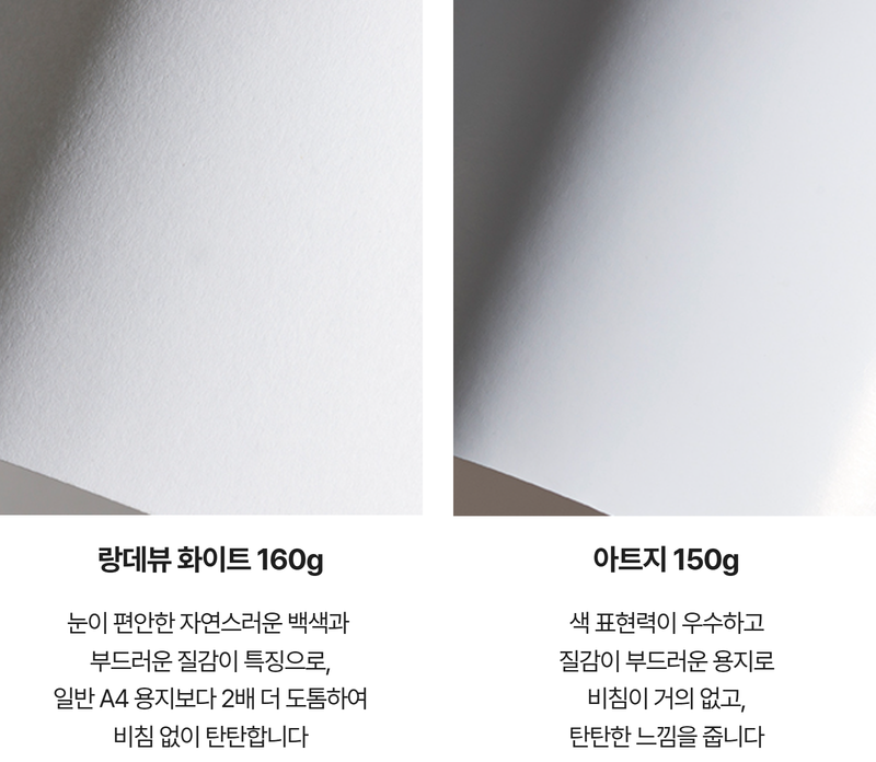 ※ 내지 페이지 수가 20p를 넘는 경우에는 아트지로 제작됩니다 ※