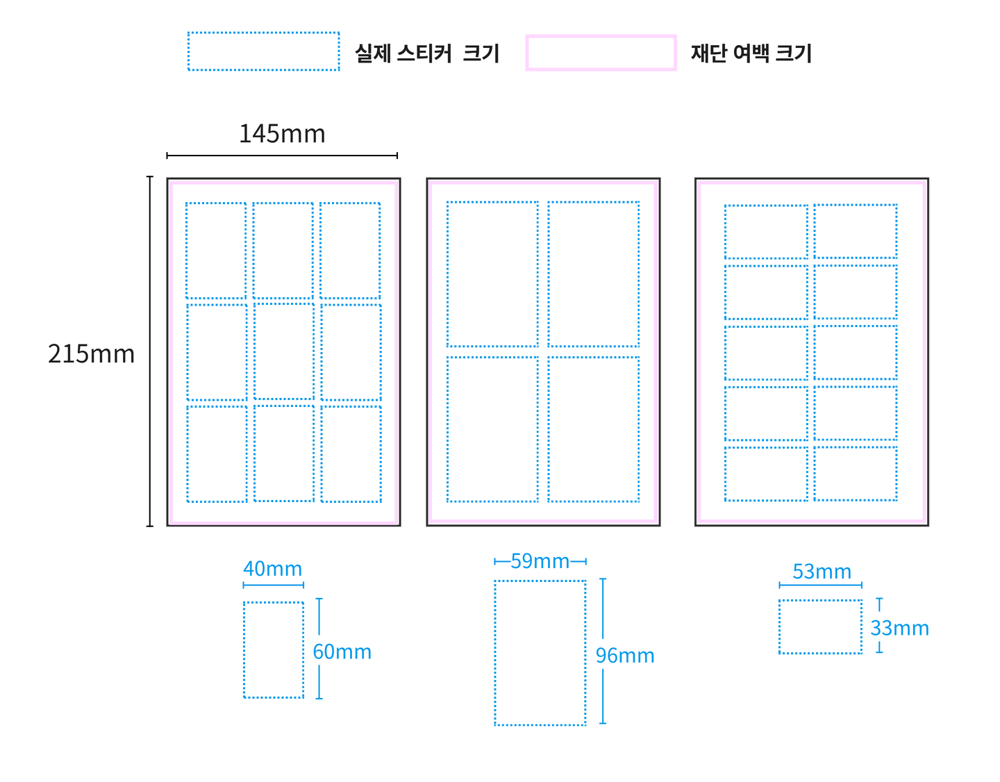 스티커는 칼선(핑크선)을 따라 재단하지만,