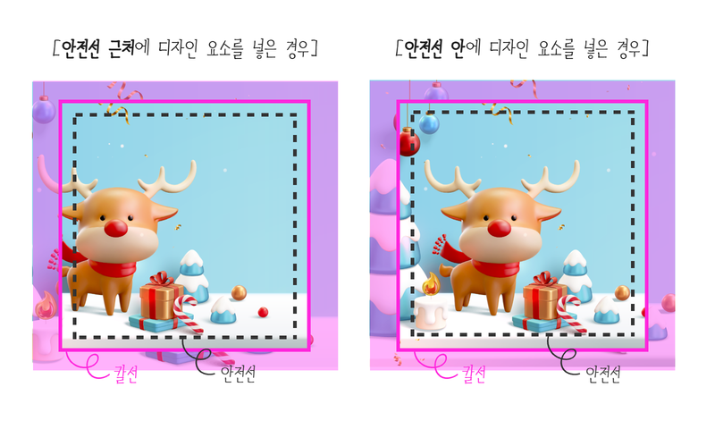 중요한 디자인 요소일 경우, 안전선(점선) 안으로 배치해 주세요!